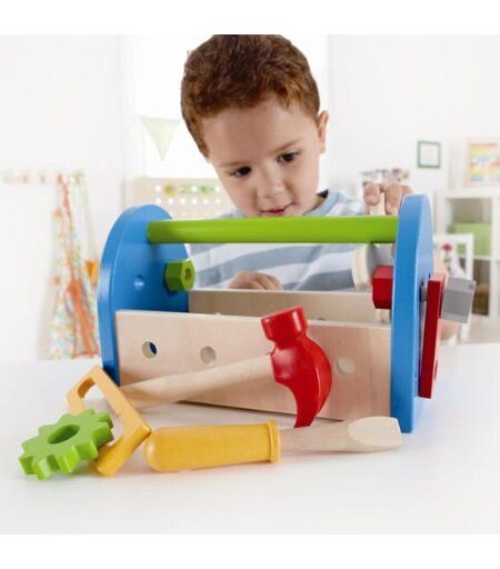 Hape Construction - 3602453 - Jeu D'imitation - Caisse À Outils Avec Marteau - Tournevis - Vis - En Boîte - 30 X 12 X 5 Cm