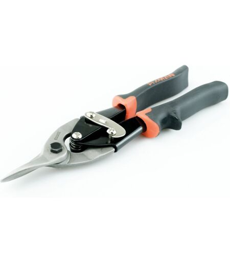 Cette cisaille équipée d¿une lame en chrome vanadium, est idéale pour la coupe de feuilles de tôle. La poignée en caoutchouc vous assure une bonne prise en main. Elle vous offre confort, stabilité et protection. Solide, les manches sont en gomme thermoplastique et polypropylène. Résistante, cette cisaille est garantie 1 an par le constructeur.,Cette cisaille, avec ses longues lames, est particulièrement adaptée à la découpe de tôles métalliques, en particulier celles en zinc. Les cisailles "type aviation" sont dotées d'un double levier qui réduit l'effort demandé pour le même effet de puissance de coupe. Ce modèle est équipé d'une garde ainsi que d'un cliquet d'ouverture automatique : ils garantissent une haute sûreté pour les mains. A cette sûreté s'ajoute une garantie de confort et de qualité de la prise en main de votre outil grâce à son gainage spécial.,Elle vous permet d¿améliorer la qualité de découpe lors de vos travaux comme la coupe de rails, de montants, de cornières et de fourrures découpées. Elle vous servira également pour la découpe du PEHD (bouteilles plastiques) dans le cadre de petits projets de fabrication. Grâce à elles, vous obtiendrez des coupes rapides et sans effort. Avec leur lame de 58 mm, elle sera idéale pour vos travaux de carrosserie, de quincaillerie et de plomberie. Pratiques, vous pourrez les emporter partout avec vous que ce soit dans votre poche, dans votre ceinture à outils ou bien dans votre caisse à outils puisqu¿elle ne pèse que 480 grammes pour une longueur de 260mm.,Laissez-vous séduire par leur coloris facilement visible puisque cette cisaille est noire et orange. Ces outils sont aussi bien destinés aux attentes des bricoleurs qu'aux exigences des professionnels., ...