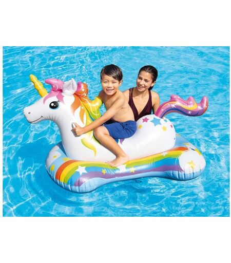 la licorne gonflable avec matelas à chevaucher Intex Vos enfants ont adoré la licorne gonflable Intex ? Profitez cette année du nouveau design de cette licorne chevauchable ! Doté d'une base large, elle est spécialement conçue pour assurer une grande stabilité à vos enfants dès l'âge de 3 ans. Pour autant, les chutes dans l'eau seront inévitables. Alors pour renforcer le maintien de vos enfants, cette licorne gonflable à chevaucher possède 2 poignées de maintien robustes. Avec elle, des heures d'amusements attendent vos petits. Ils affronteront les chaudes journées ensoleillées en toute sécurité ! Conçue en vinyle, la licorne gonflable avec matelas à chevaucher Intex possède 2 chambres à air. Elle mesure 163 cm de long sur 86 cm de large, et peut supporter jusqu'à 40 kg. ...
