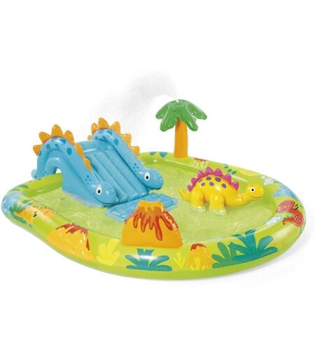 Description générale Bienvenue dans le monde des Petits Dino ! L'aire de jeux gonflable Intex Petit Dino est parfaite pour les enfants à partir de 2 ans. Avec son design coloré inspiré des dinosaures, elle promet des heures de plaisir aquatique. Cette aire de jeux comprend un toboggan, une fontaine intégrée à relier à un tuyau d'arrosage et un petit dinosaure gonflable pour encore plus d'amusement. Spécifications techniques Dimensions : 191 x 152 x 58 cm Poids : 2,55 kg Capacité : 143 litres Poids maximum supporté : 54 kg Matière : PVC Âge recommandé : 2 ans et + Épaisseur du liner : 0,28 mm Compatibilité et accessoires Inclus : 1 toboggan gonflable, 1 fontaine, 1 dinosaure gonflable Compatible avec les tuyaux d'arrosage pour la fontaine Installation Gonflage facile et rapide Doit être installé sur une surface plane et propre Relier la fontaine au tuyau d'arrosage lors de l'utilisation Utilisation Conçu pour le jeu aquatique en plein air Idéal pour se rafraîchir pendant les journées ...