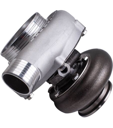 Notice: This turbo suits for banjo bolt with 2.5-3.0mm oil restrictor This is a turbocharger Perfect for 2.0L-3.0L engine which can boost up to 690hp. Here we get some data in our test for your reference: The pressure control 1.0BAR-1.5BAR (14.5psi-21.75psi) L4 2.0L engine, the horsepower around 400ps-500ps (395hp-495hp) L4 2.5L L6 2.5L V6 2.5L engine, the horsepower around 450ps-600ps (445hp-590hp) L6 3.0L V6 3.0L or above engine, the horsepower around 500ps-600ps (495hp-595hp) Note: Due to variaty of engine models, engine enhancement levels, engine brands, gasoline quality, altitude and ECU tuning, different horsepower will be produced. This is the list of commonly used engines, not the data in non-limit condition. Specification Exhaust inlet outlet flange Type: V-Band Compressor housing: Anti-surge Turbine Housing: Stainless Steel Cooling Type: Water + oil cooled Bearing Type: Floating Type Horse power: Up to 300-700PS (295hp-690hp) professional mechanic test Pressure Control: Handle up to 3.0 Bar(43.5psi) Compressor Inducer Diameter: 55mm Compressor Exducer Diameter: 76.1mm Compressor Trim:52 Compressor A/R:0.63 Turbine Inducer Diameter: 61mm Turbine Exducer Diameter: 54.8mm Turbine Trim: 81 Turbine A/R:0.82 Condition: 100% brand new Warranty: 2 years Our Special Features / Benefits: 1)Perfectly designed and durable floating bearing?with high precision dynamic balanced wheel blades, which can boost more than 3.0BAR. 2)High temperature resistance, stainless steel turbo housing can withstand more than 1050 degree celsius of exhaust temperature. 3)High efficiency and low inertia wheel blades significantly reduce turbo lag. 4)Water and oil cooling system can extend the life of the turbo The engine power output can be increased by more than 200%, can boost up to 300-700PS. ...