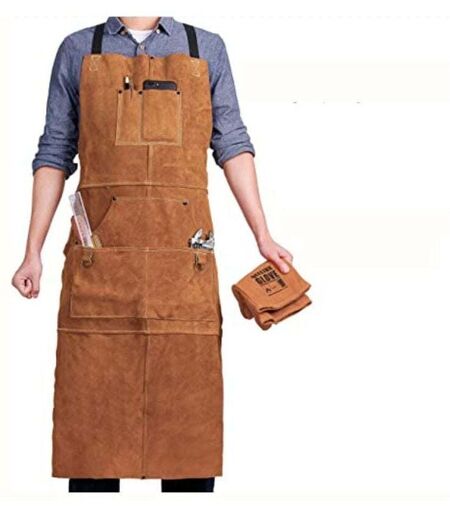 YMYNY Tablier de soudeur 6 poches, en cuir ignifuge et résistant à la chaleur, taille M à XXXL, idéal pour les forgerons, les mécaniciens et les ateliers.