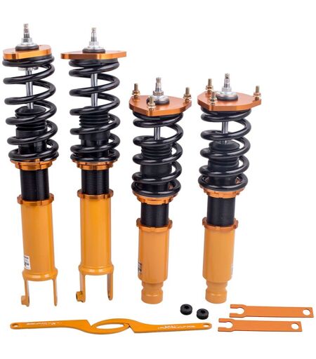 Kit de suspension spring pour Infiniti M35x M45x G35x G37x AWD Amortisseur Neuf Application Pour Infiniti M35x 06-10 AWD Pour Infiniti M45x 06-10 AWD Pour Infiniti G35x 03-08 AWD Pour Infiniti G37x 08-13 AWD Quantité : 2 piece avant + 2 pieces arriere Rigidité de Ressort Avant : 10kg/mm(560 lbs/in) Rigidité de Ressort Arriere: 12 kg/mm (672lbs/in) Couleur: Doré Amortissement: 24 ways damper adjustable Hauteur ajustable: Oui Carrossage ajustable: Non Garantie: 2 ans de garantie pour tout défaut de fabrication Caractéristique * Hauteur de conduite réglable * Tension réglable du ressort de précharge * Monture supérieure à boule d'oreiller - cette conception permet de lutter contre le bruit lors de la mise au point. Il améliore également la sensation de direction et la réponse * La plupart des composants sont fabriqués à partir d'aluminium 6063 avec T6 pour une dureté accrue - les avantages comprennent une excellente résistance et l'aluminium permet de réduire le poids. * Ressort de résistance à la traction élevée - Moins de 600 000 fois en continu, la distorsion du ressort est inférieure à 0,04%. De plus, le traitement de surface spécial consiste à améliorer la durabilité et la performance. * Tous les inserts sont livrés avec des bottes en caoutchouc adaptées pour protéger l'amortisseur et le garder propre. * Améliorez vos performances de manipulation sans sacrifier la conduite confortable. * Un moyen rapide et abordable d'améliorer facilement l'apparence de votre voiture. * Installation facile avec les bons outils. * Idéal pour toute piste, piste ou route rapide et peut également être utilisé pour la conduite quotidienne. Remarque Importante -Le mode de l?emploi N?est Pas inclus. L'installation professionnelle est recommandée. -Contactez-nous via la messagerie Ebay immédiatement lorsque vous avez des problèmes sur le produit ou la commande.Nous ferons touts nos efforts pour résoudre vos problèmes. La satisfaction du client est notre plus grand but. -S'il vous plaît nous laisser des rétroactions positives et nous apprécierions beaucoup, après que vous avez reçu votre commande avec satisfaisantes. Votre commentaire positive nous encourager à fournir des articles et des services meilleures dans l'avenir. ...