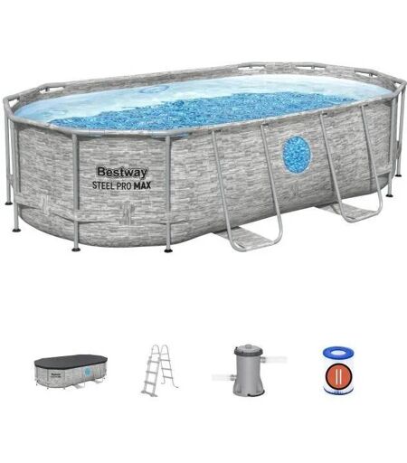 Kit Piscine hors sol tubulaire BESTWAY - Steel Pro MAX¿- 427 x 250 x 100 cm - Ovale (Filtre à cartouche, échelle, bâche, 1 cartouche