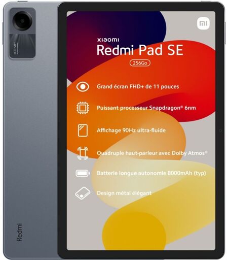 PAD SE 8 - 256 GO GRIS Écran FHD+ 90Hz ultra fluide de 11 pouces,Processeur Snapdragon® 680,RAM 8 Go - 256 Go de stockage,Système MIUI Pad 14 basé sur Android - Poids : 478 g - Epaisseur : 7,36 mm ...