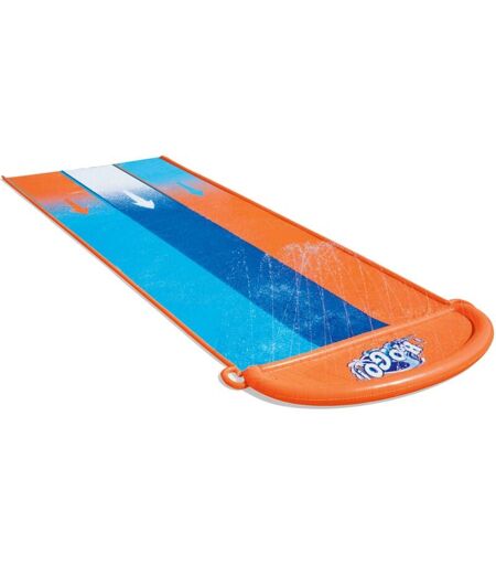 Description générale Le toboggan triple Bestway H2OGO ! mesure 4,88 mètres et est idéal pour les enfants souhaitant s'amuser en extérieur. Ce tapis de glisse gonflable permet de faire des courses à trois tout en se rafraîchissant grâce à ses arroseurs intégrés qui se connectent facilement à un tuyau d'arrosage. À l'extrémité du toboggan se trouve une piscine qui aide à ralentir la vitesse des enfants et à garantir un atterrissage en douceur. Spécifications techniques Dimensions : 488 x 207 cm Poids : 2 kg Matériau : PVC durable et testé Couleur : Multicolore (Bleu et orange) Patch de réparation inclus Âge recommandé : plus de 3 ans, sous la surveillance d'un adulte Compatibilité et accessoires Compatible avec un tuyau d'arrosage pour activation des arroseurs Installation Dépliez le toboggan sur une surface plane et propre Connectez le tuyau d'arrosage aux arroseurs intégrés Gonflez si nécessaire et assurez-vous qu'il est bien fixé au sol Utilisation Convient pour les jeux d'été en ...