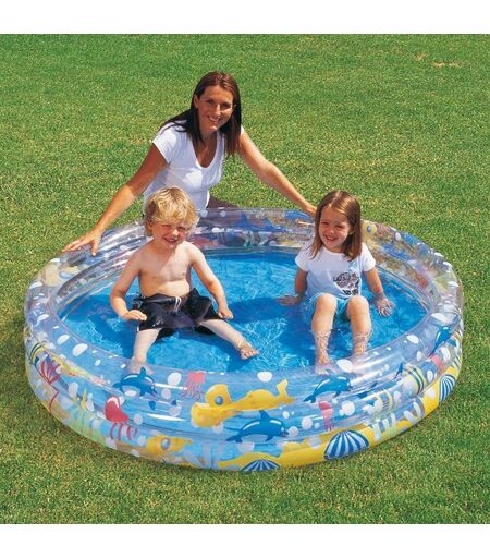 A gonfler. Dim. piscine gonflée : 150 x 150 x 28 cm. Dim. piscine dégonflée : 152 x 152 x 30 cm. Valves de sécurité. 3 boudins identiques (3 chambres à air). En PVC (0.19 mm). Capacité d'eau 75 % maximum : 317 litres. 1 rustine incluse. 2-3 utilisateurs. A utiliser sous la surveillance d'un adulte. ...