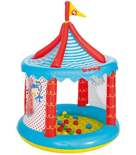 Une aire de jeux amusante pour vos enfants avec le cirque gonflable Fisher Price de Bestway. Son concept mélange dans un seul produit l'idée d'une piscine à balles colorées avec l' apparence d'une fête gonflable , ce qui attirera certainement les petits dans la maison. Cette structure gonflable peut être utilisée aussi bien à l'intérieur qu'à l'extérieur. Ses murs sont colorés et comportent des animaux imprimés. Il a également un drapeau au sommet et des poteaux en rouge. À l'intérieur, la structure est suffisamment grande pour que deux enfants puissent en profiter. Le set comprend 25 balles colorées qui leur rappelleront les parcs d'attractions et offriront aux enfants un moyen supplémentaire et amusant d'apprendre à attraper et à lancer, d' améliorer la coordination œil-main et d' autres aptitudes motrices lorsqu'ils rampent, marchent ou courent derrière eux. Les enfants feront travailler leur imagination pendant des heures dans leur nouvelle piscine à balles Fisher-Price . ...