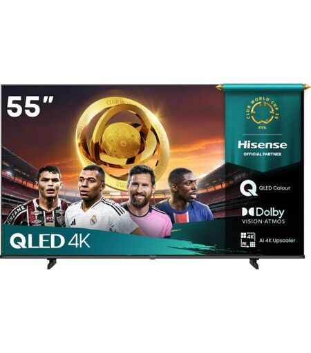Product Features Écran QLED 55" (139 cm) avec Quantum Dot pour un spectre colorimétrique élargi et compatibilité 10 bits Dolby Vision et Dolby Atmos pour une expérience audio-visuelle immersive Vidaa U9 Smart TV avec applications intégrées et contrôle vocal Mode Jeu PLUS et Mode Filmmaker pour des performances optimisées selon l'usage Connectivité complète : 3x HDMI 2.1, 2x USB, Wi‑Fi, Bluetooth, AirPlay 2 et DLNA Qualité d'image avancée Le téléviseur intègre une dalle QLED avec Quantum Dot , un processeur Quad Core et le moteur Hi-View pour un upscaling Ultra HD , une prise en charge des couleurs 10 bits et un pic de luminosité de 320 nits garantissant des couleurs riches et des contrastes précis. Audio immersif Équipé de Dolby Atmos et de deux haut-parleurs de 2x10 W , le téléviseur propose un rendu sonore immersif complété par les fonctions audio avancées telles que Dolby Audio et un égaliseur paramétrable. Modes et fonctionnalités pour chaque usage Profitez du Mode Jeu PLUS pour ...