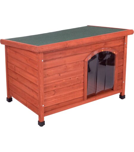 Niche Woody pour chien taille M - Toit plat et porte en plastique