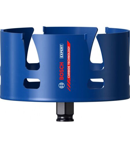 Scie trépan EXPERT Construction Material PC Plus Pour perceuses/visseuses rotatives, Pour perceuses / visseuses a percussion Dure jusqu'a 50 fois plus longtemps que la scie trépan 2608594494 de Bosch dans les matériaux résistants Longue durée de vie pour la découpe dans les briques et les panneaux de particules Durabilité exceptionnelle garantie par la technologie Bosch Carbide Technology Dents fines en carbure aiguisées et affutées pour plus de résistance, de durabilité et de précision A utiliser avec le montage sans clé Bosch Power Change Plus : offrant précision et robustesse EXPERT Construction Material PC Plus pour une longue durée de vie de coupe dans les briques et panneaux de particules La découpe de trous dans la brique, les carreaux souples et les cloisons seches est essentielle pour les plombiers et électriciens, que ce soit sur des chantiers de construction ou lors de travaux de rénovation. Peu de scies trépans sont capables de résister a ce type de tâches présentant un mélange de matériaux de construction résistants, mais la scie EXPERT Construction Material PC Plus y parvient. Cette scie trépan peut servir et durer pour de nombreux travaux. La scie trépan Bosch EXPERT Construction Material est une scie robuste, tres utile sur les chantiers, et qui offre une grande valeur aux professionnels en raison de sa grande longévité.> ...