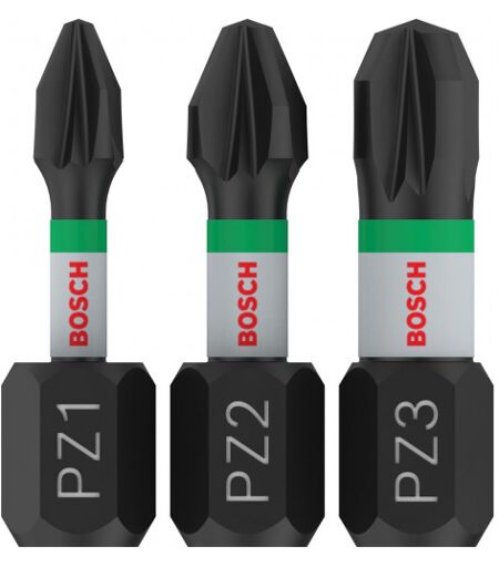 Bosch Embouts PRO PZ Impact, PZ1 x 25, PZ2 x 25, PZ3 x 25 mm, 3 pieces 2608522471