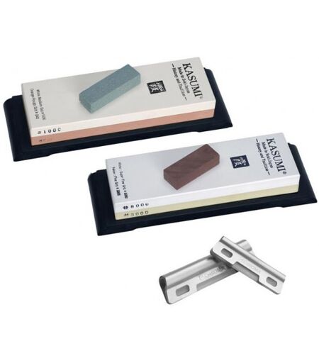Set de 2 pierres à aiguiser japonaises kasumi premium 240/1000 et 3000/8000 + 4 accessoires
