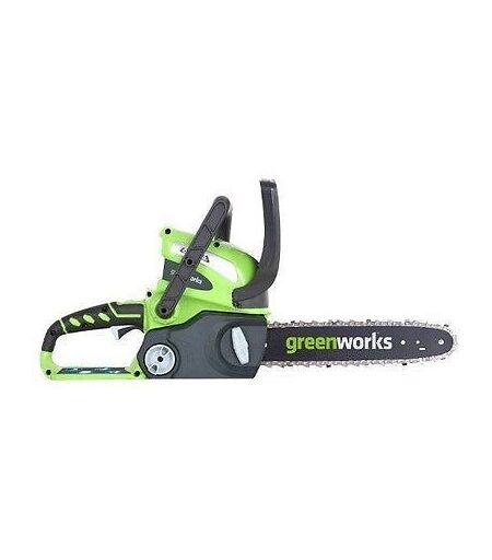 Attention batterie et chargeur, Chargeur non inclusG-MAX 40V Lithium-Ion est une batterie de haute performance qui délivre une endurance sans perte de mémoire après la chargeGuide robust de 30 cm (12'') en acier avec bouton de réglage rapide de tension de chaîne sans outil, offre une facilité d'utilisation et des performances de coupe les plus élevéesPas de chaîne de 10mm (3/8'') qui offre la possibilité d¿obtenir ces branches taillées et découpées avec minimum de recoulSystème de lubrification automatique applique l'huile sur le guide et la chaîne lorsque cela est nécessaire pour assurer une utilisation optimale et durable, avec un réservoir d'huile transparant pour une visibilité du niveau d'huileBatterie et chargeur ne sont pas inclus(Compatible avec les batteries Greenworks G-MAX 29717 et 29727)Description du produit: Propulsé par l'innovation, non pas par l'essence! Cette tronçonneuse sans fil Greenworks Tools 30cm (12'') G-MAX 40V Lithium-Ion offre toute la puissance que vous avez besoin pour que votre jardin ait une apparence impeccable, sans les tracas de l'essence ou des rallonges. La tronçonneuse Greenworks Tools 30cm (12'') dispose d'un robuste guide en ancier de 30cm (12'') et une chaîne d'une capacité de coupe de 10mm (3/8'') . La tronçonneuse Greenworks Tools intègre également des fonctionnalités telles que l¿interrupteur de sécurité pour éviter la mise en marche accidentelle et la poignée bi-matériel pour offrir un confort superieur. Avec cette tronçonneuse sans fil Greenworks Tools G-MAX 40V Lithium-Ion, la vie devient plus facile. ...