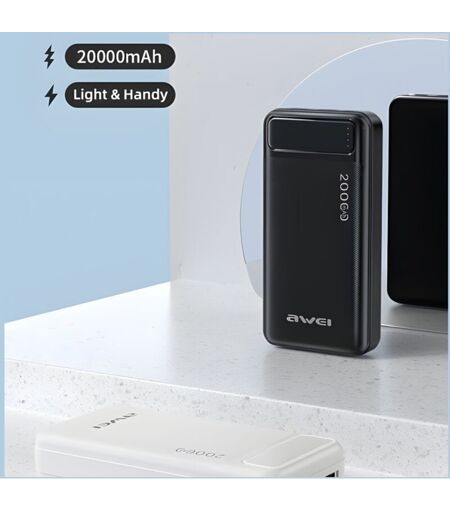 Batterie externe AWEI P6K 20 000 mAh, 2 ports USB/Power Delivery, noir