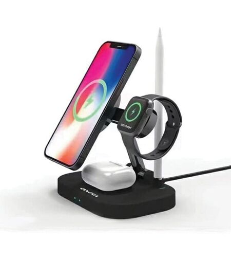 Chargeur inductif 4-en-1 Awei 15 W à charge rapide, noir