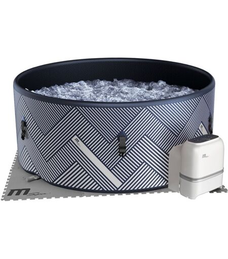 Description générale Sur la terrasse ou dans la véranda, ce spa gonflable au design moderne vous apporte tous les bienfaits d'une séance de balnéothérapie à domicile. Détendez vos muscles et libérez-vous l'esprit en plongeant dans ce bain à bulles chaud et massant. Grâce au panneau de contrôle ou à l'application MSpa Link, ajustez la température de l'eau, réglez la puissance des jets d'air et procédez à la désinfection à l'ozone. Spécifications techniques Dimensions : Spa (extérieur) : Ø 173 × H 65 cm Spa (intérieur) : Ø 163 cm Jets d'air : Ø 3 mm Cordon d'alimentation : 5,1 m Tapis de sol : L 177 × l 177 × H 0,5 cm Pièce du tapis : L 59 × l 59 × H 0,5 cm Matières : Spa (extérieur) : PVC avec technologie drop-stitch Spa (intérieur) et couverture : PVC Tapis : EVA (mousse) Couleurs : Spa (extérieur) : bleu et beige Spa (intérieur) : bleu Compatibilité et accessoires Accessoires inclus : 2 cartouches de filtration Base cartouche de filtration Pompe haute pression avec jauge et tuyau ...