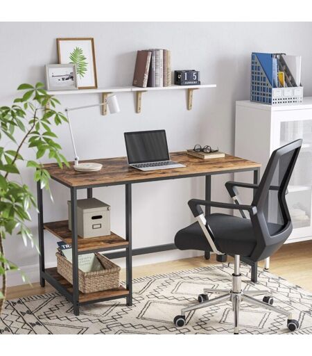 Vasagle - Bureau informatique Table d'étude - Étagère à 2 niveaux à gauche ou à droite - Pour bureau, salon - Cadre en métal - Style industriel