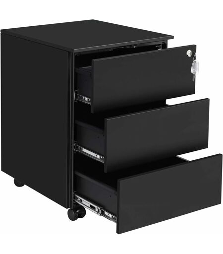 DESCRIPTION GÉNÉRALE Ce caisson de bureau à 3 tiroirs SONGMICS est idéal pour un espace de travail organisé. Il permet de ranger vos documents et fournitures essentielles tout en maximisant votre efficacité. Sa structure en acier assure durabilité et robustesse. SPÉCIFICATIONS TECHNIQUES Couleur: Noir mat Matériau: Acier Dimensions du produit: 39 x 45 x 55 cm (L x l x H) Poids: 16 kg Charge max par tiroir: 15 kg COMPATIBILITÉ ET ACCESSOIRES Le caisson est livré avec un sachet d'accessoires et un mode d'emploi en plusieurs langues (FR, IT, DE, EN, ES). INSTALLATION Le caisson est préassemblé pour un montage facile. Vous pouvez choisir d'installer ou non les 4 roulettes fournies, dont 2 avec frein. UTILISATION Les 3 grands tiroirs permettent de stocker de nombreux documents, tout en garantissant la sécurité grâce à un tiroir verrouillable. ...