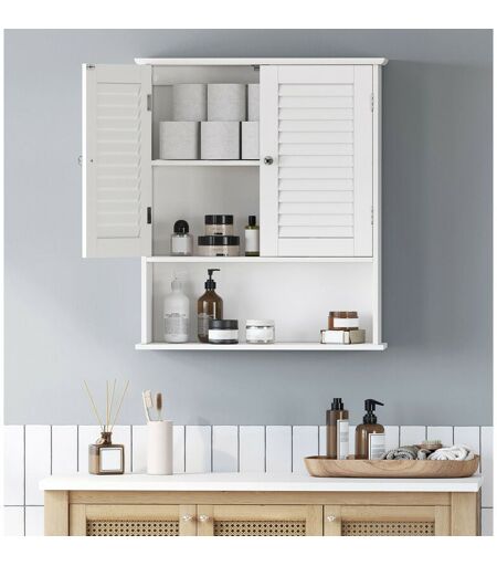 Vasagle - Armoire Mural pour Salle de Bains, avec Étagère Réglable, double Porte et Étagère ouverte, 60 x 20 x 70 cm, Ligneux, Blanc