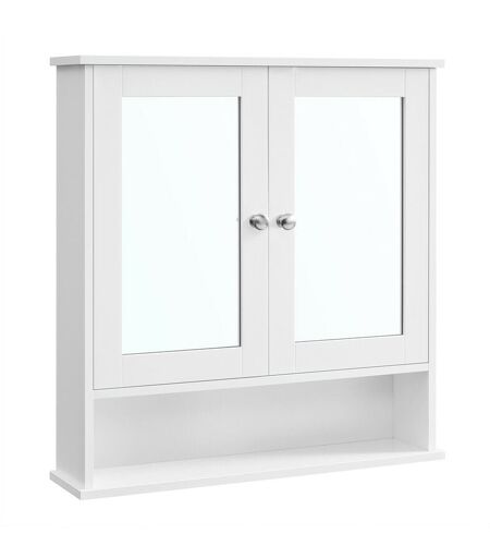 SONGMICS Armoire Murale Salle de Bain, Placard de Rangement Toilettes, avec 2 Portes et Miroirs, 3 Niveaux, Étagères à Hauteur Réglable, 56 x 13 x 58 cm, Blanc
