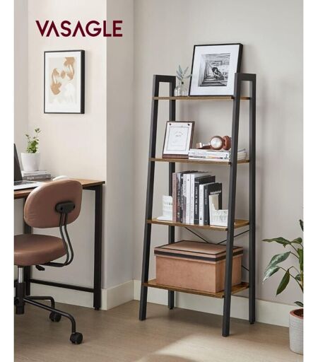 VASAGLE Meuble de Rangement, ÉtagÈre Rangement 4 Niveaux, BibliothÈque, pour Salon, Chambre, Cuisine, Bureau, Style Industriel, Cadre en Acier, Marron
