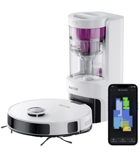 Euréka Robot aspirateur laveur avec station Eureka E10S blanc