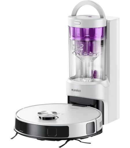 Eureka - E20 Plus Aspirateur Robot de 8000 Pa, couleur blanche, avec Station de Vidange Automatique sans Sac, Robot Aspirateur Laveur Anti