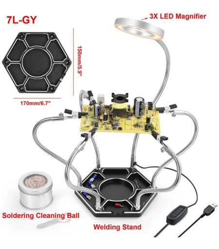 Troisième Main Soudure, Troisième 3eme Main avec 6 Bras Flexibles Réglables, Loupe 3X LED pour Réparation Électronique, Modélisme et Loisirs Créatifs