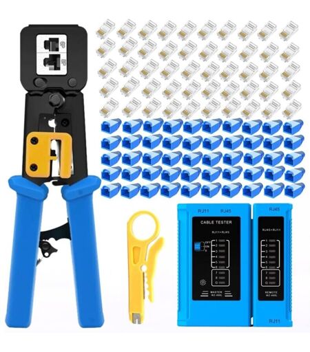 Kit d'outils de sertissage RJ45 Proster - Outil de sertissage traversant RJ45 pour câbles réseau CAT5, CAT5e et CAT6 avec testeur de câbles réseau,