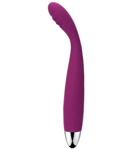 Découvrez le Vibromasseur Cici de Svakom. Un vibromasseur luxueux qui vous procurera une stimulation intense et précise du point G et même du clitoris ! Cici est vraiment un vibromasseur de très haut standing. Tout d'abord, sa finition en fait un objet parfait. Svakom a souhaité prendre un silicone de très haute qualité pour concevoir un produit très doux au toucher et souple. Sa tête est dotée de trois rainures pour titiller encore plus vos zones érogènes. Elle est extrêmement flexible pour vous permettre de positionner le vibromasseur avec un maximum de précision et être sûre d'atteindre votre point G. Cici dispose de 5 modes de vibration et de 5 vitesses que vous pourrez régler grâce à un bouton de contrôle unique et simple d'utilisation sur la face du sextoy. Choisissez l'intensité de vibration au gré de vos envies et caressez intensément vos parties intimes pour atteindre en un instant le septième ciel ! Son design ergonomique vous permet d'avoir une incroyable prise en main. Sa base en acier inoxydable lui donne un look magnifique. Cici est très peu bruyant (moins de 50 décibels) ce qui en fait l'un des stimulateurs Point G les plus silencieux du marché. Votre Vibromasseur Cici est fabriqué dans un silicone 100% hypoallergénique ultra doux. Il est totalement waterproof pour une utilisation dans votre bain ou votre douche. Rechargeable via USB (câble inclus). Autonomie 4h. Pour une utilisation optimale de votre sextoy, espaceplaisir vous recommande d'utiliser un lubrifiant à base d'eau. Veillez à bien nettoyer votre sextoy avant et après chaque utilisation. ...
