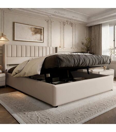 Ce lit allie rangement, matériaux confortables et fonctionnalités modernes pour un confort optimal et une qualité de vie optimale. Son système de rangement à air comprimé offre un espace spacieux sous le lit, ce qui simplifie le rangement. Le lin de haute qualité sélectionné est doux pour la peau, respirant et hypoallergénique, adapté à toutes les saisons et vous offre un sommeil confortable. Son sommier à lattes robuste assure une durabilité à long terme, avec une capacité de charge allant jusqu'à 300 kg, garantissant sécurité et stabilité. Son design simple et tendance s'adapte à tous les styles d'intérieur, ajoutant élégance et praticité à votre chambre. C'est le choix idéal pour le bonheur de toute la famille. Caractéristiques du produit : 1. Conception de rangement sous le lit, expérience de vie pratique Grâce à son système de rangement à air comprimé, il est facile à transporter et à ranger. L'espace spacieux sous le lit permet de ranger vêtements saisonniers, literie et autres ...