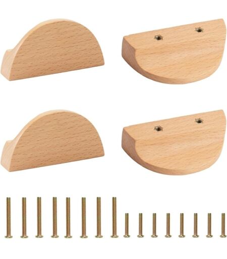 LARGEIGHT Half Moon Drawer Handles, 4 Pieces Half Circle Wooden Pull Beech Wood Drawer Hardware Double Hole Wardrobe Drawer Hardware for Drawer Cabinet