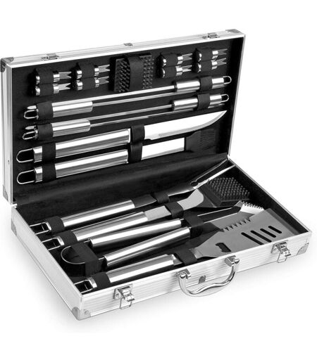 Dpzo - Kit Barbecue en Acier Inoxydable - Mallette de Rangement en Aluminium - Utensiles pour bbq Professionnel - Set de 18 Pièces
