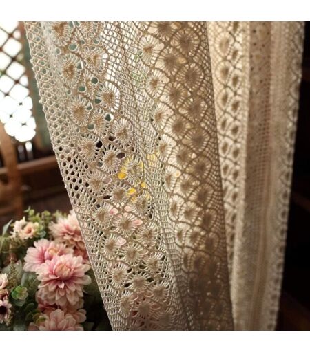 Dpzo - Rideaux Américains en Chanvre de Coton, Voilage Crochet Creux Beige 150x150cm (59x59inch) pour Balcon et Chambre