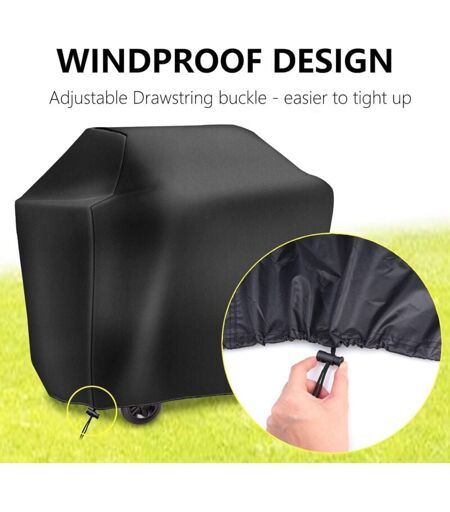 Compatibilité parfaite: dimensions 145x61x117 cm, couverture de barbecue pour la plupart des grils, tels que Weber, Char Broil, Brinkmann, Tepro, Campingaz, etc., pour protéger parfaitement le gril. Vérifiez la taille de votre gril pour un bon ajustement. Matériaux de Qualité: Les matériau de protection de l’environnement nano que nous utilisons ont un cycle de vie anti-âge, une résistance à l'eau et une fermeté. Le barbecue est protection toute l'année. Conception spéciale: N'ayez pas peur que la couverture du barbecue soit soufflée par le vent. Parce que le fond du gril a des boucles ajustables qui peuvent être serrées pour s’adapter au gril, cette toile de barbecue est faite de matériaux résistants, ce qui signifie qu’elle peut être protégée du soleil, de la pluie, de la poussière et des rayons UV. Facile à nettoyer et à ranger: Le couvercle du gril est placé dans un sac de rangement ne prenant pas trop de place. Il est également facile à nettoyer. Vous avez juste besoin d'un tuyau ...
