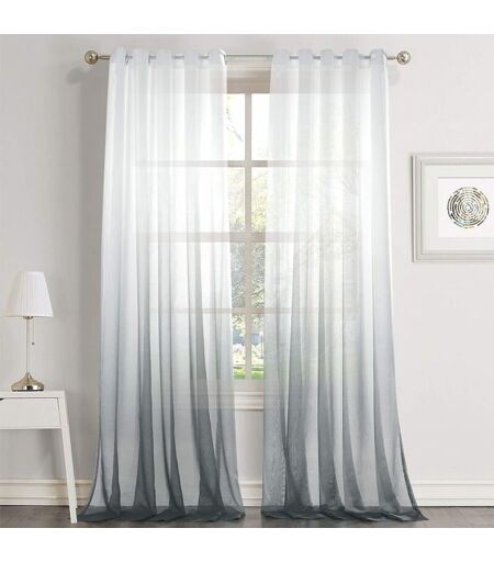 Dpzo - Rideaux Voilage Blanc Gris Dégradé à Œillet, Élégant Décor de Fenêtre, 2 Panneaux 140x245 cm
