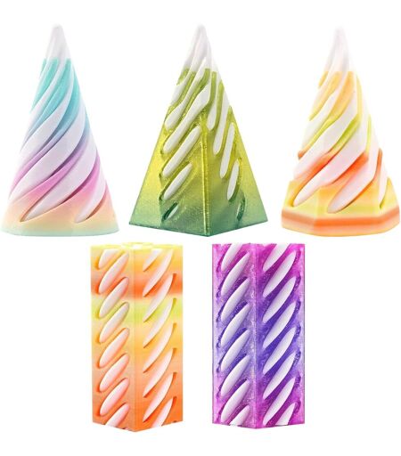 RVKAL-3D Imprimé Spiral Cone Fidget Toy 5 Pièces Jouet Fidget En Spirale Imprimé En 3D De Haute Précision Combination Rotating Pyramid Objet Anti Stress Impossible Pyramide Traversant Sculpture Pour