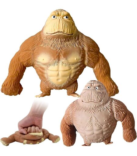 KAL-2 Pcs Gorille Extensible Jouet Élastique Gorilla Jouet Gorille Anti-Anxiété Gorille Anti-Anxiété Marron Figurine De Gorille Anti Stress Stretch Gorilla Squishy Monkey Objet (Un Grand Et Un Petit)