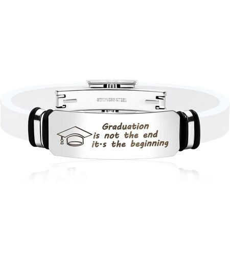 Kal-Bracelet De Remise De Diplôme Personnalisable Acier Inoxydable Avec Symbole De Toque & La Remise De Diplôme N'est Pas La Fin, C'est Le Début Cadeau Étanche En Silicone Pour Lui Et Elle