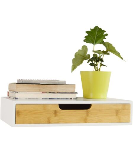 Matériau : fibres de densité moyenne (MDF) et bambou naturel. Couleur : Blanc et bambou naturel. Dimensions: L40cm x P24cm x H8cm. Dimensions de tiroir intérieur: L35,5cm x P20cm x H4,6cm. Poids : 2kg. Capacité Max : 5kg. ...