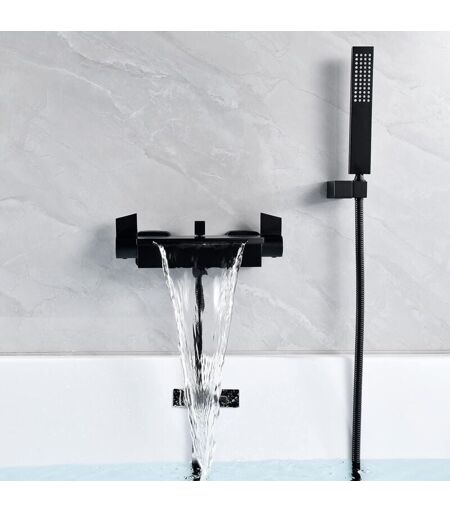 DKSFJKL Mitigeur Baignoire Cascade Mural Robinet De Baignoire Pommeau De Douche Cascade Mural Robinet De Baignoire Chaud Et Froid (Noir)