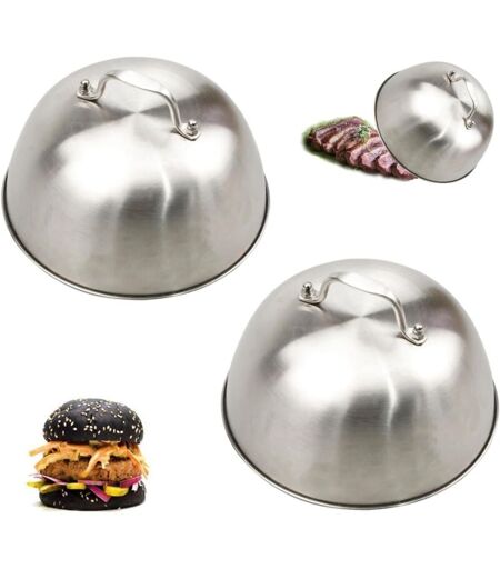 Lot de 2 Cloche Plancha, Cloche Cuisson Burger avec Poignée, Cloches à Hamburger en Acier Inoxydable, pour Cheeseburgers, Barbecue, Steak, Bacon