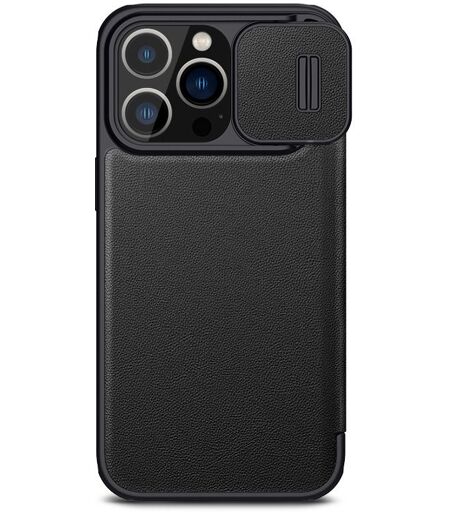 Iphone 14 Pro Étui Nillkin Qin Pro Leather Avec Pochettes Cb & Cache Caméra Coulissant (Noir)