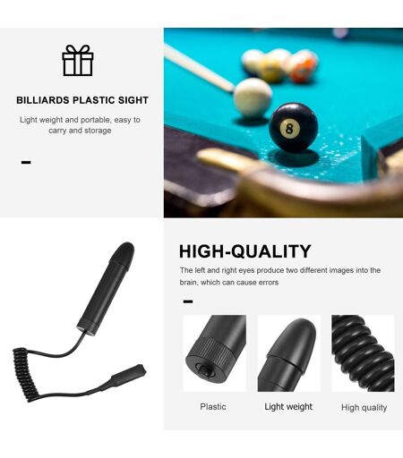 DescriptionParfaitement grève le cue chaque fois avec cette vue de billard bar, vous pouvez couvrir tous les angles possibles et longueur de tir! Mieux encore, la lumière vue est conçue pour attirer une ligne la table aussi, si coups droits sera un jeu d'enfant.Caractéristiques-Matériel: Plastique-Taille:5.00X1.50X1.50cm/1.97X0.59X0.59in-Fait en plastique matériaux pour une utilisation sûre et durable.-Avec le but, différents angles, qui fait frappé position plus clair.-L'installation est stable et ferme, facile à utiliser.-Améliorer votre jeu avec elle, un grand cadeau pour amoureux de billard.-Corriger l'action de la cue course. Vous ne peut pas observer la différence subtile dans l'action.1 x vue De Billard bar ...