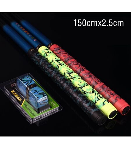 Caractéristiques:1. Fabriqué en EVA et PU avec doux, antidérapant et résistant à l'usure.2. Conception de bandes EVA respirantes pour l'absorption de la sueur et des chocs.3. Bandes élastiques avec adhésif pour couvrir fermement et protéger les poignées des rayures, faciles à installer et à ranger.4. Processus d'impression de Surface, la surface est recouverte d'un film, elle doit être enlevée avant d'être enroulée, et l'extrémité est scellée avec un ruban d'étanchéité.5. Applicable aux poignées de badminton, cannes à pêche, tennis, raquette de squash, poignée de vélo, volant, batte de baseball, etc.Spécifications:Type d'article: bandeau de canne à pêcheMatériau: PU, EVACouleur: bleu, noir, rouge, violet, jaune, vertÉpaisseur: 2mmTaille: 150*2.5cm(L * L)Emballage Inclus:1 pièce * bandeau de canne à pêche ...