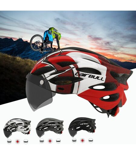 Casque de vélo ultraléger, équipement de cyclisme en plein air, avec éclairage arrière, vtt, avec lunettesDétail de produit:?Marque: Cairbull?Couleur: noir et blanc, noir et rouge, noir, motif carbone?Matériau du casque de vélo: coque PC en mousse EPS?Circonférence de tête applicable (CM): 54-61?Taille intérieure du casque (CM): 22*17?Whether intégré: un?Numéro de stomata de casque: 22?Casque assorti: bord de chapeau, lunettes, feu arrière?Taille du casque (CM): 26*20*14?Poids du casque (G): 230Caractéristique du produit:?Protection puissante: la coque extérieure du casque est en plastique PC ultra-léger, qui répond aux normes américaines de sécurité des vélos. Le matériau de la doublure intérieure est une mousse EPS de haute qualité, qui peut bien absorber les chocs et offrir plus de protection aux cyclistes.?Ventilation et ventilation, conformément à l'aérodynamique: aérodynamique professionnelle et conception de ventilation, 22 évents, laisser l'air à travers le casque de vélo, aider à augmenter la vitesse et à rester au frais?Léger et confortable, léger et sans charge: ce casque de vélo est fait de matériaux légers pour maintenir le poids au minimum sans sacrifier la sécurité du port confortable?Conception humanisée: ce casque de vélo adopte une taille standard, la circonférence de la tête peut être ajustée au mieux; Le feu arrière de réglage intégré a une bonne sécurité; le pare-soleil et les lunettes détachables peuvent bloquer les rayons ultraviolets et réduire la résistance à l'éblouissement et au vent?Options multicolores: le casque a une variété de couleurs au choix, avec des couleurs vives, une apparence lisse et de bons cadeaux!Emballage Inclus:? 1 * casque avec Feu Arrière ...