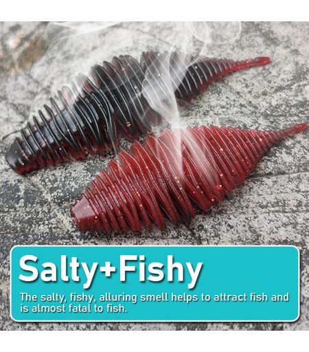Lot D'appâts Artificiels Souples En Forme De Ver Pour La Pêche, Pack De Leurres Pour Attraper Des Poissons Tels Que Les Bars, En Peau De Porc, Avec Saveur De Sel, Swimbait, Émulation, 6 Pièces