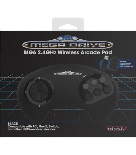 Big6 2.4 Ghz Sega Mega Drive Wireless Arcade Controller Pad For Sega Mega Drive Original/Mini, Switch, Pc & Mac - Black