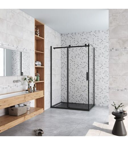 AICA SANITAIRE AICA cabine de douche coulissante 100x80x200cm porte de douche + paroi latérale Hauteur 200cm En 8mm verre anticalcaire profilé noir mat